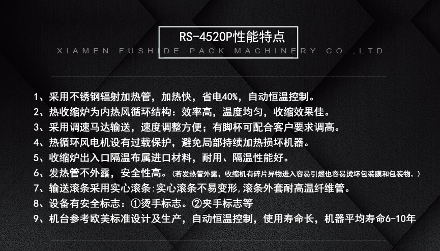 擁有多項(xiàng)專利技術(shù) 數(shù)千平標(biāo)準(zhǔn)廠房 批量標(biāo)準(zhǔn)化生產(chǎn) 可定制開發(fā)和自動(dòng)化流水線搭建! 超前技術(shù)團(tuán)隊(duì) 先進(jìn)加工工藝 高精度加工設(shè)備 近20年專業(yè)研發(fā)經(jīng)驗(yàn)不斷改進(jìn)、創(chuàng)新、突破!我們定位于專注做中高端全自動(dòng)熱收縮膜包裝機(jī),請不要拿我們和不同定位的廠家對比!我們是源頭工廠…
