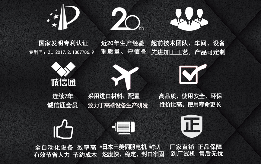 擁有多項(xiàng)專利技術(shù) 數(shù)千平標(biāo)準(zhǔn)廠房 批量標(biāo)準(zhǔn)化生產(chǎn) 可定制開發(fā)和自動(dòng)化流水線搭建! 超前技術(shù)團(tuán)隊(duì) 先進(jìn)加工工藝 高精度加工設(shè)備 近20年專業(yè)研發(fā)經(jīng)驗(yàn)不斷改進(jìn)、創(chuàng)新、突破!我們定位于專注做中高端全自動(dòng)熱收縮膜包裝機(jī),請(qǐng)不要拿我們和不同定位的廠家對(duì)比!我們是源頭工廠…